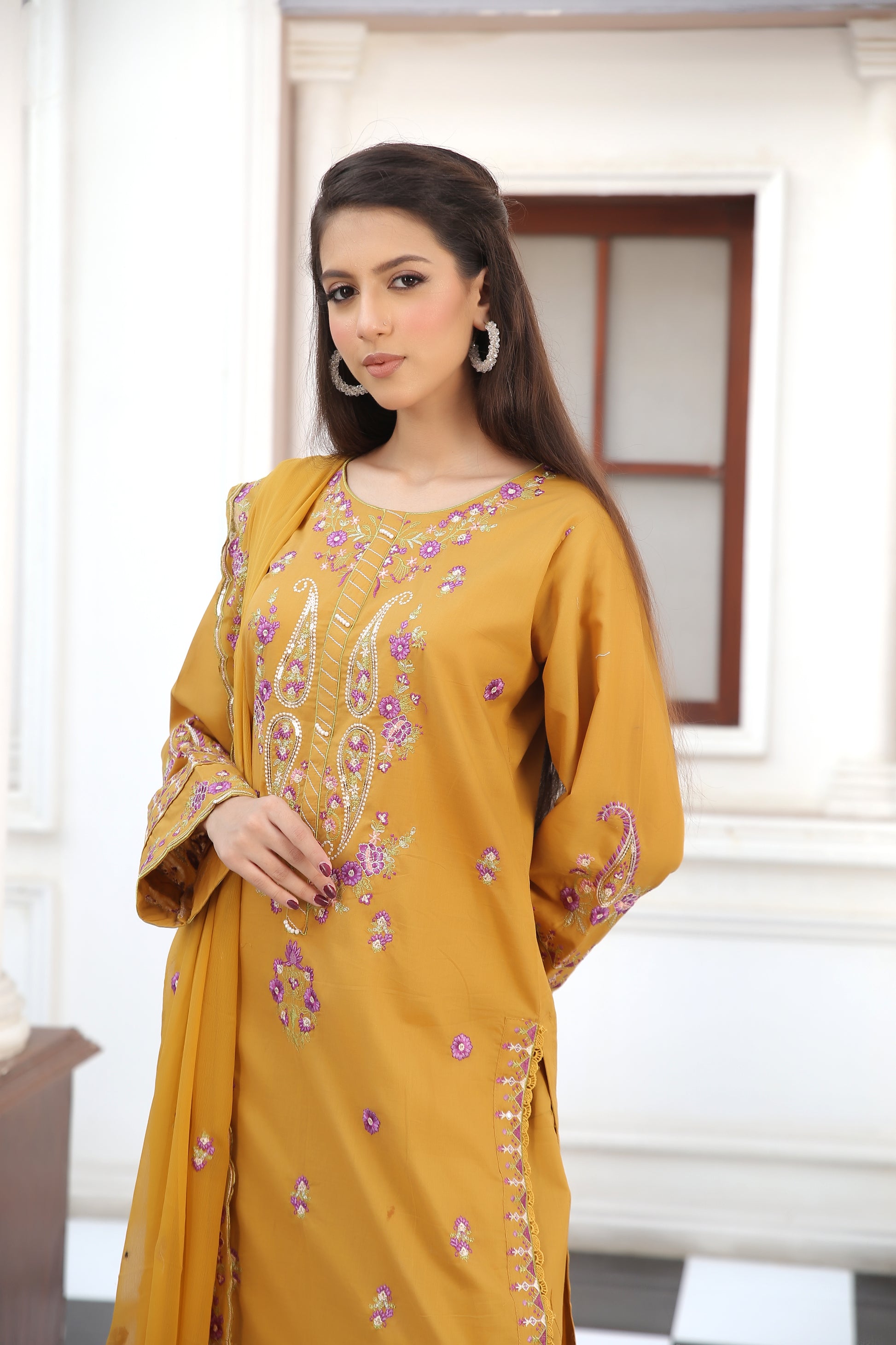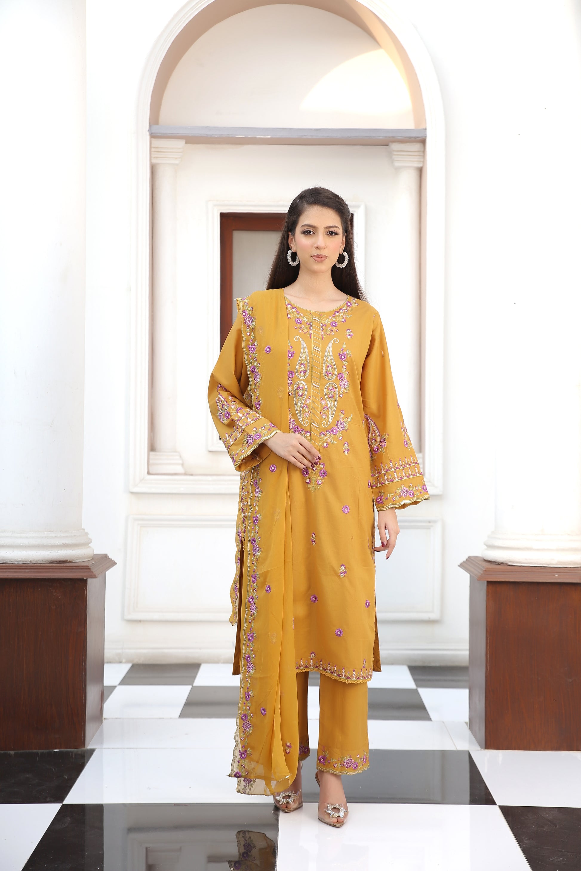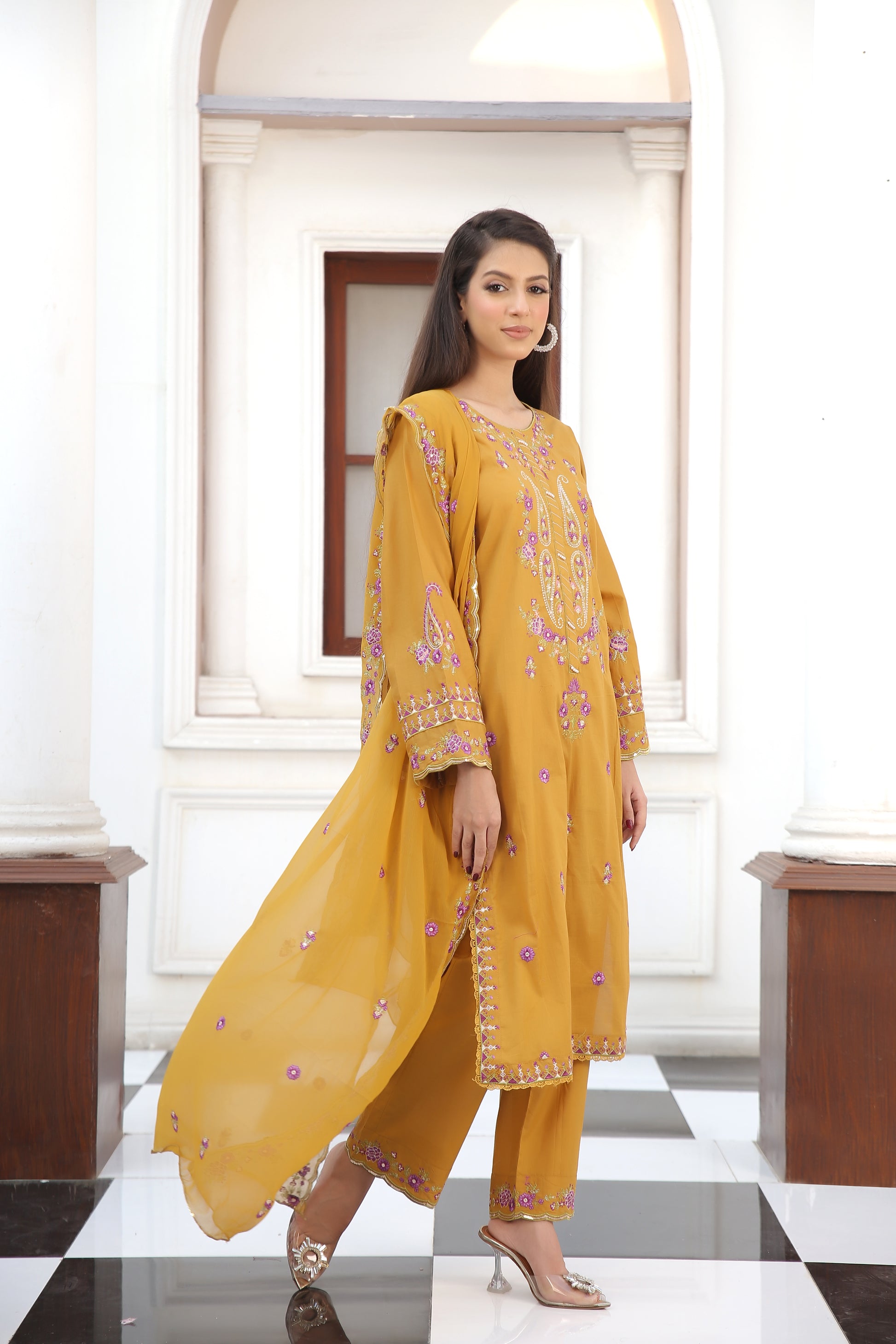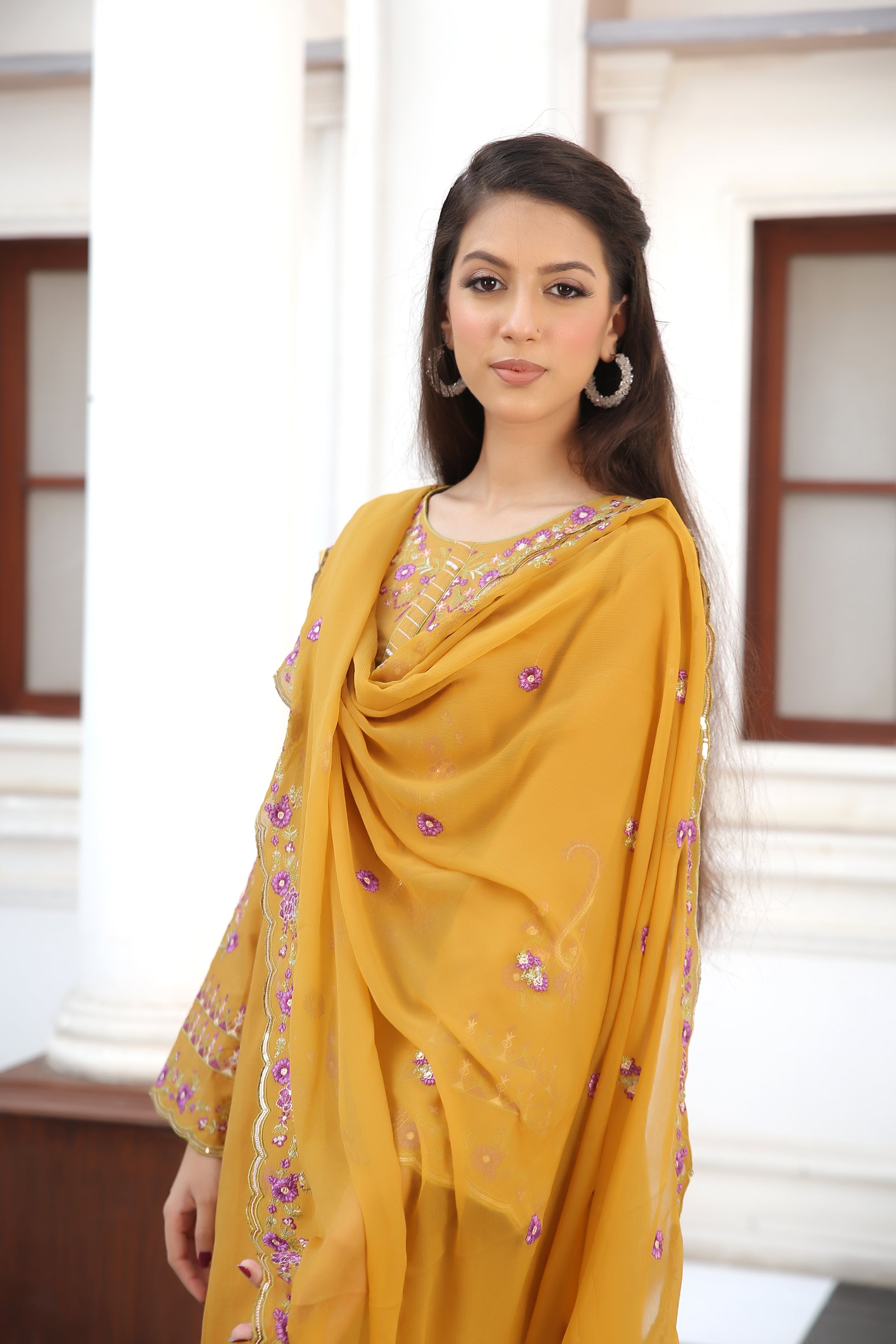 Dupatta: Chiffon with embroidery accents