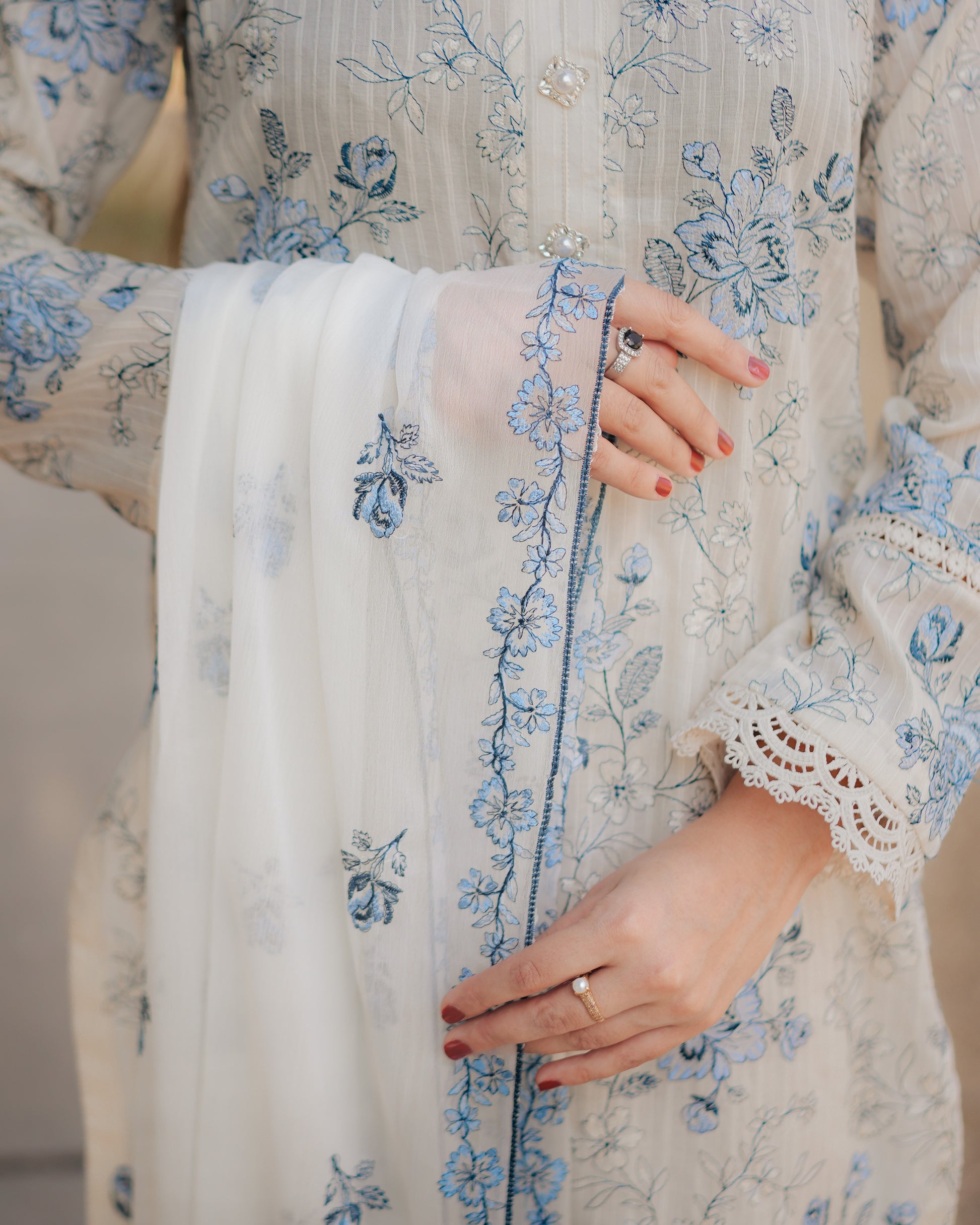 Dupatta: Chiffon with embroidery accents